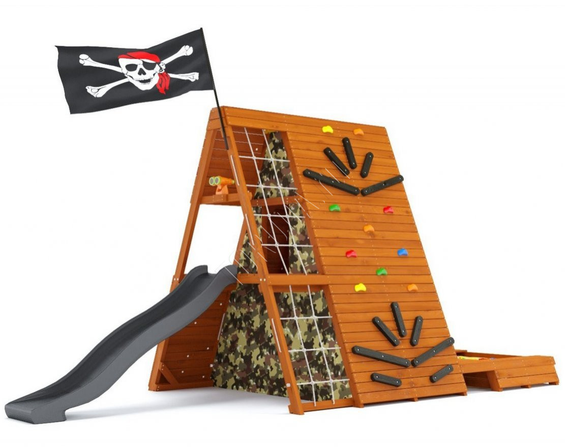 - Пиратский флаг, кресло-лежак складное с 3 положениями спинки для детей и родителей, а также подушка с фиксаторами-липучками в красивом цвете – всё это поможет детям расслабиться после активной игры и создаст неповторимую атмосферу приключений и фантазии.