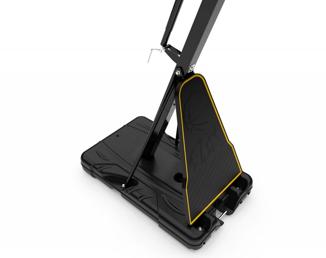Портативная баскетбольная стойка совмещает в себе мобильность и обеспечивает отскок мяча, как на профессиональной площадке. Благодаря усиленной конструкции удалось добиться увеличенного вылета щита, при сохранении компактности размещения. Он регулируется в диапазоне от 230 до 305 см, имеет защитное покрытие Poly Pade в нижней части. В основание стойки (объем 114,7 л) необходимо залить воду или засыпать песок в качестве утяжелителя.