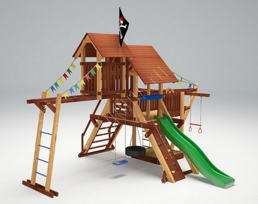 Площадка Галиот 6 обладает довольно широким функционалом (который по желанию можно легко расширить). А на качелях могут кататься даже родители! Детская площадка предназначена для дачи, коттеджа.
