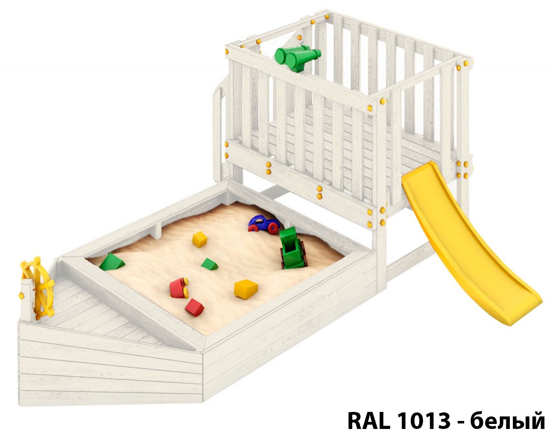 Детская песочница-кораблик и капитанский мостик с горкой с высоты 600 мм.