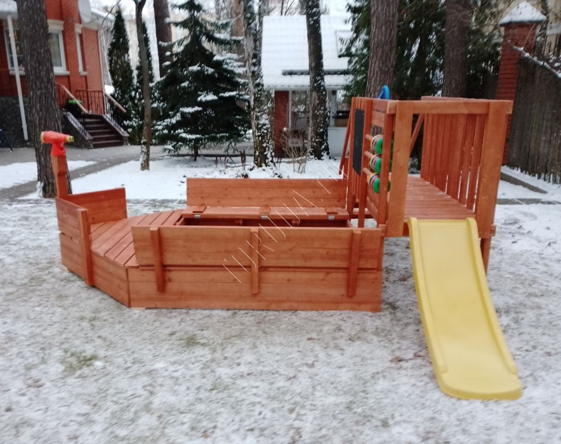 Представляет собой полноценный песочный дворик, который обеспечит ребёнку не только увлекательные игры на свежем воздухе, но и развитие моторики, координации движений, логического мышления и математических навыков.