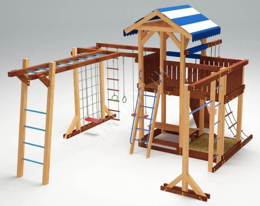Площадка Парус 7 обладает довольно широким функционалом (который по желанию можно легко расширить). Детская площадка предназначена для дачи, коттеджа.