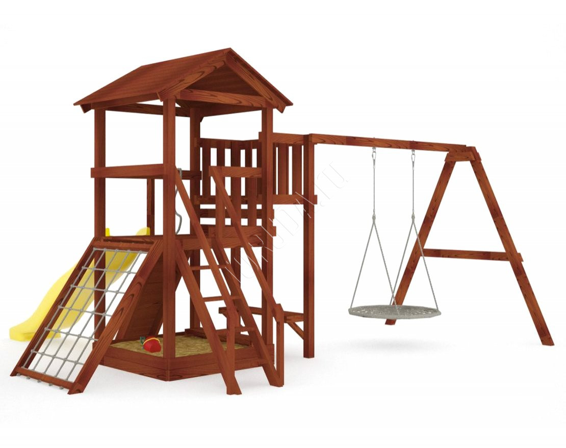 Он безопасен даже для малышей – все крепежи скрыты под заглушками, металлические детали покрыты порошковой краской, а навесное оборудование произведено специально для детей в Бельгии. Конструкция, качество дерева и подвесные атрибуты соответствуют ГОСТ.