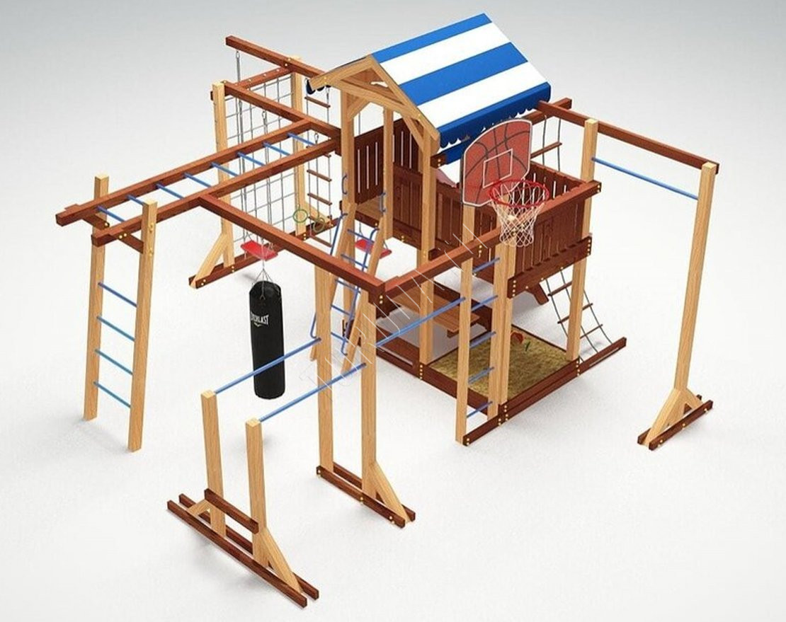 - Детская игровая площадка оснащена настоящим баскетбольным кольцом и подвесной боксёрской грушей.