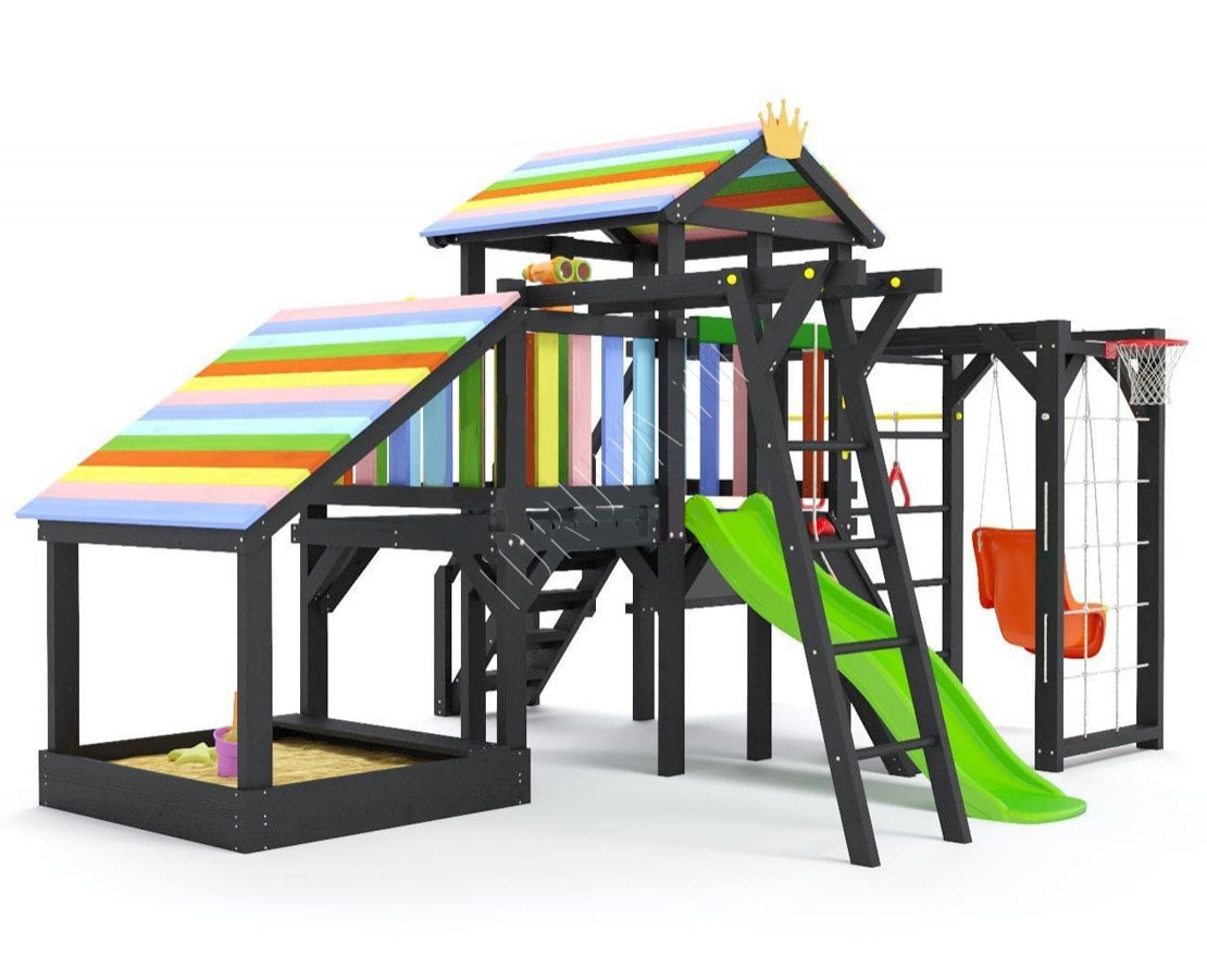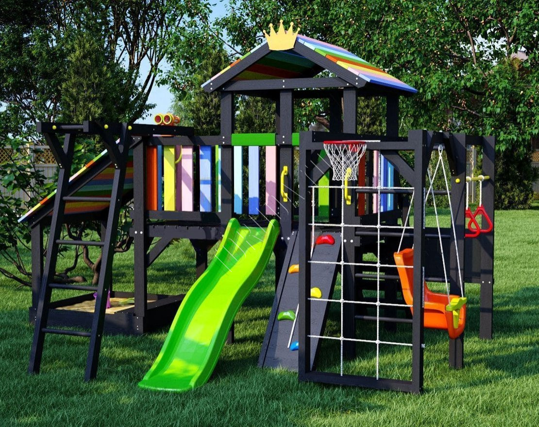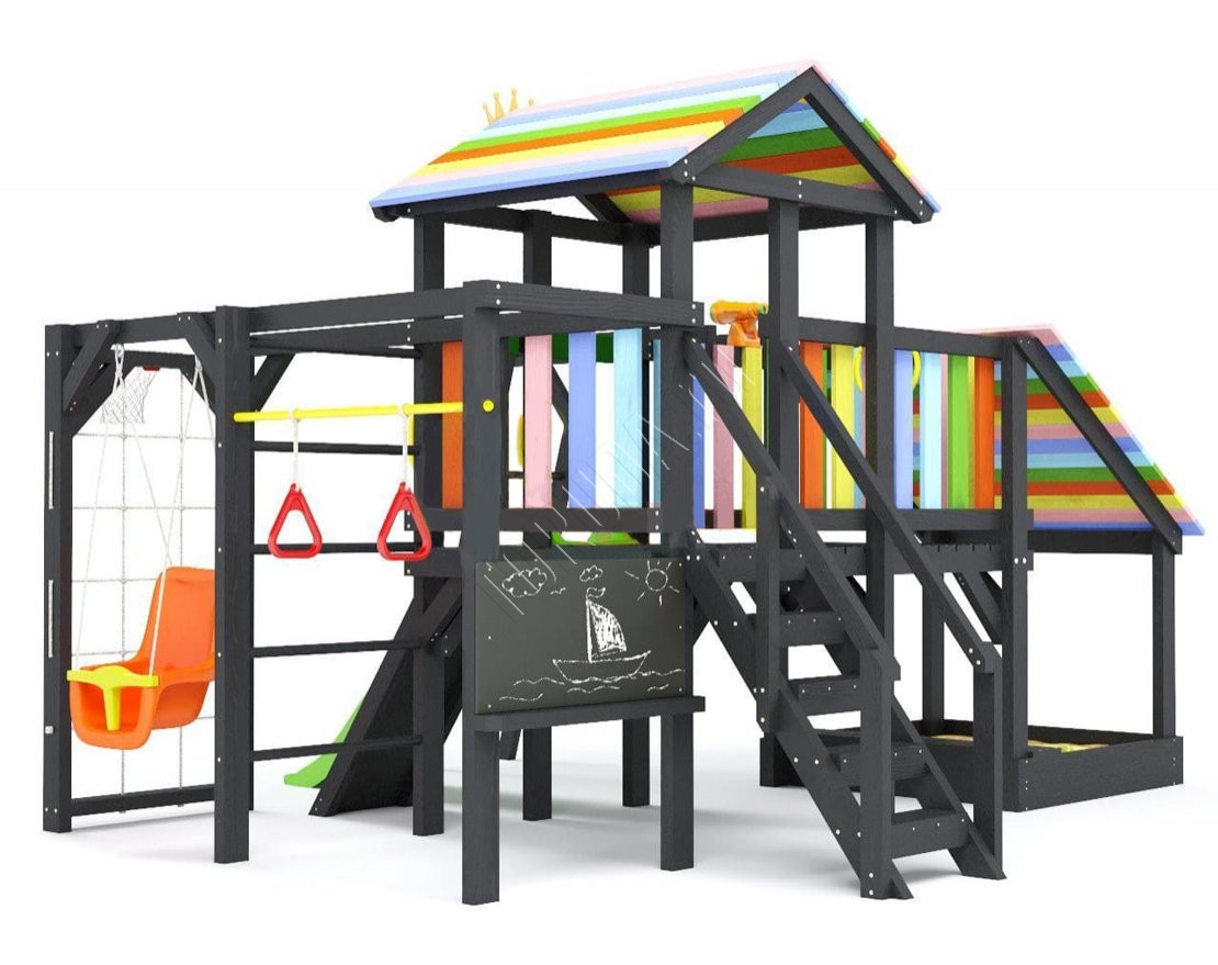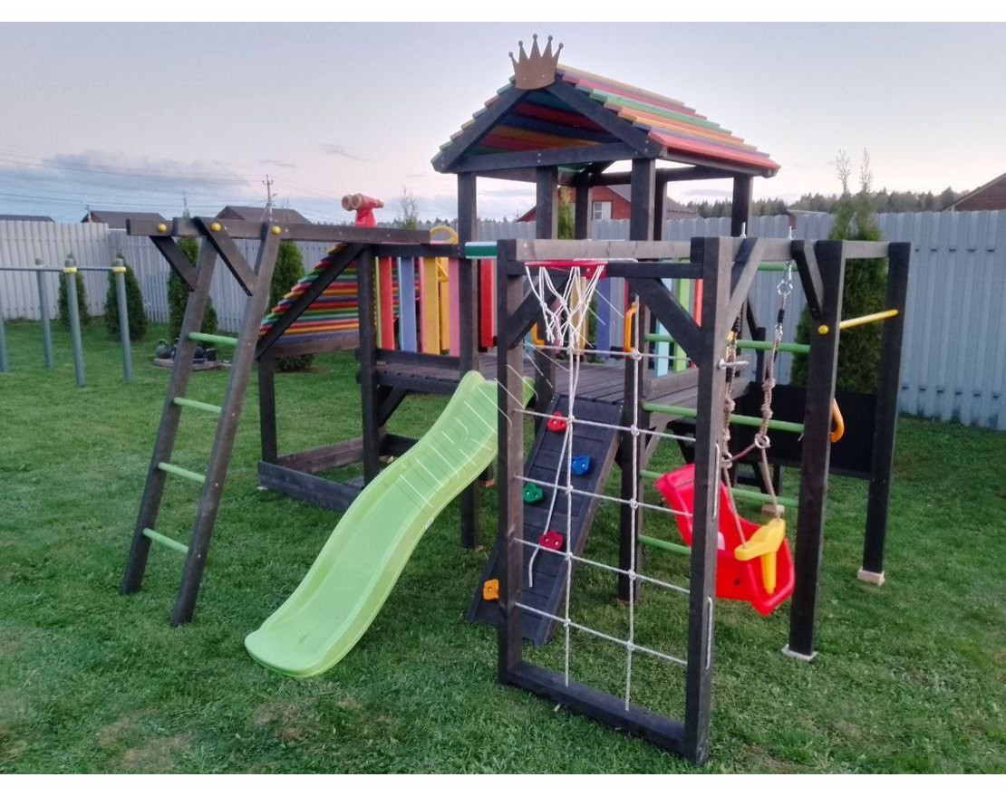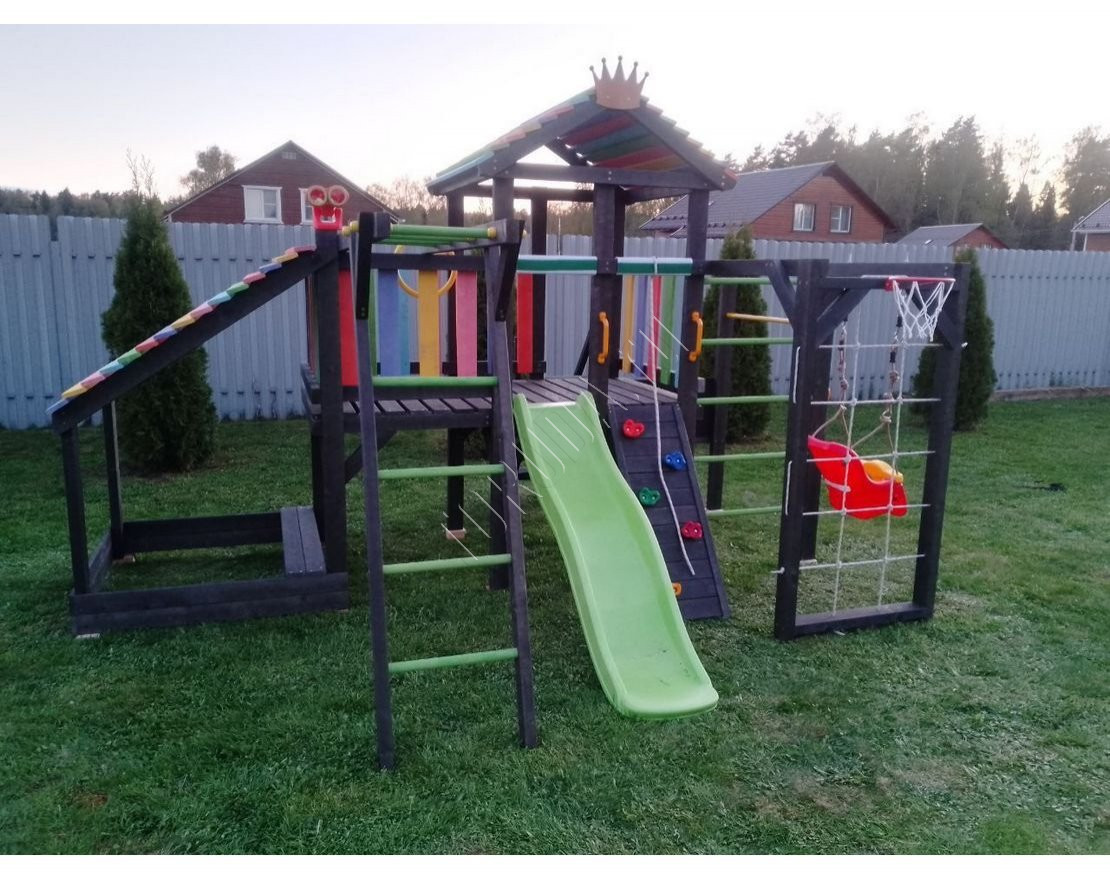 Детская площадка обладает довольно широким функционалом, предназначена для дачи, коттеджа.