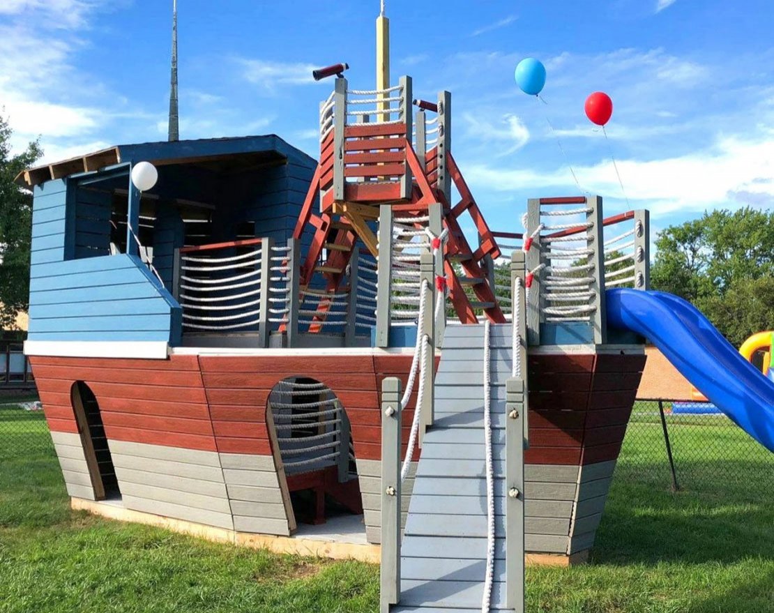 Воронье гнездо – это наблюдательный пост с 2 лесенками. Он соединяет нос и корму корабля. К мачте можно привязать флаг. На втором этаже установлены 2 люка для спуска и подъёма. Также есть обычная лестница, по которой можно безопасно подняться в верхнюю комнату. К корпусу комплекса крепится перекладина для подвесных качелей.