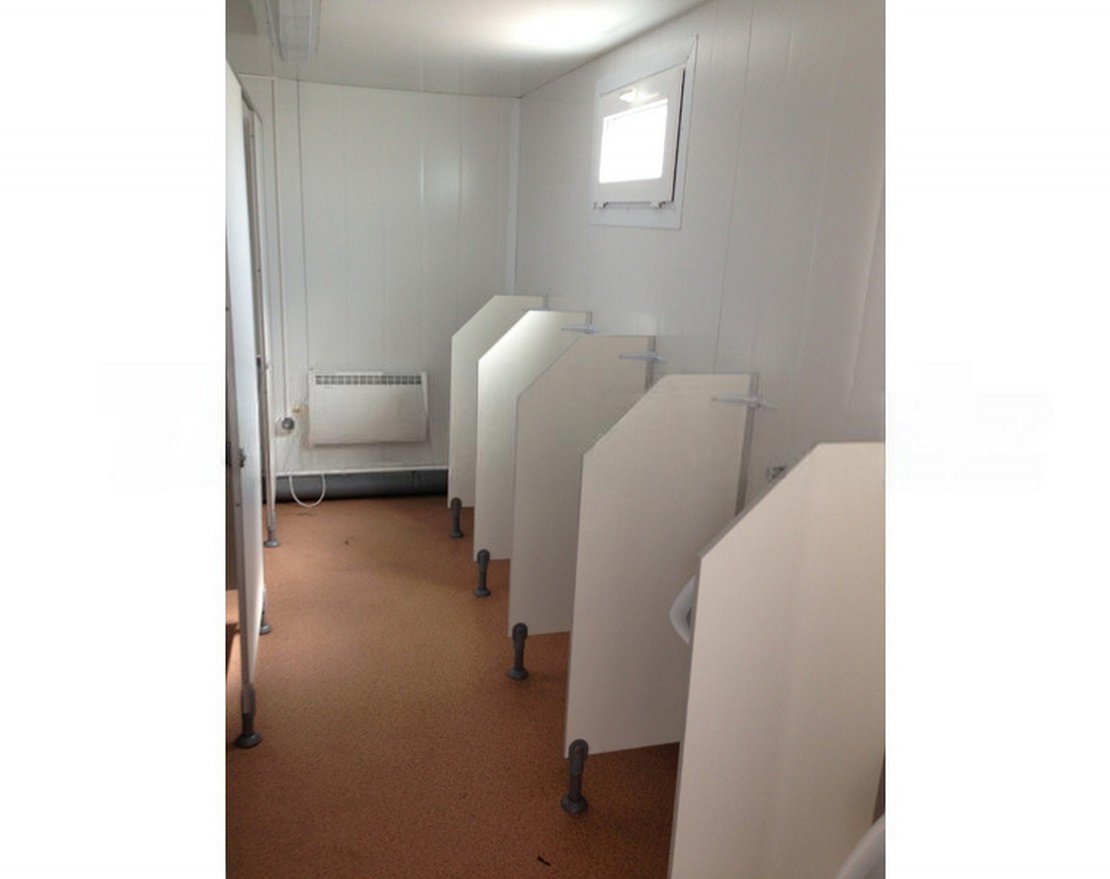 Перед вами модель. Это павильон, предназначенный для использования мужской частью населения. Он разделен на несколько отделений с унитазами, писсуарами и раковинами. Комплектация определяется заказчиком, при желании унитазы могут быть заменены на Чаши Генуя.