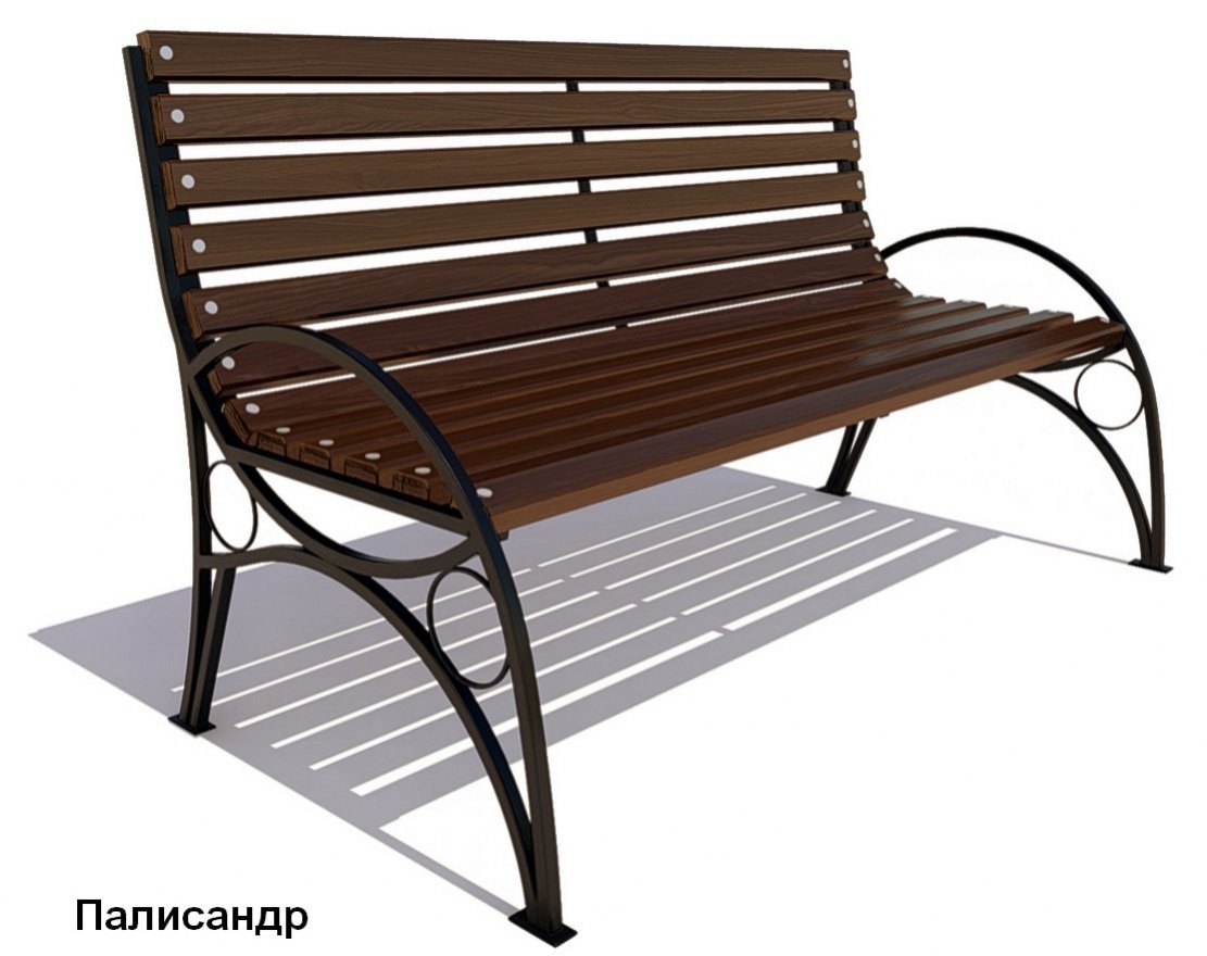 Сиденье и спинка: Брус из хвойных пород древесины, обработан экологичными инновационными лакокрасочными материалами, что подтверждает Свидетельство ЕвАзЭС. Стандартный цвет по умолчанию – палисандр. Есть возможность выбора цвета из палитры. Тип крепления: анкерный.