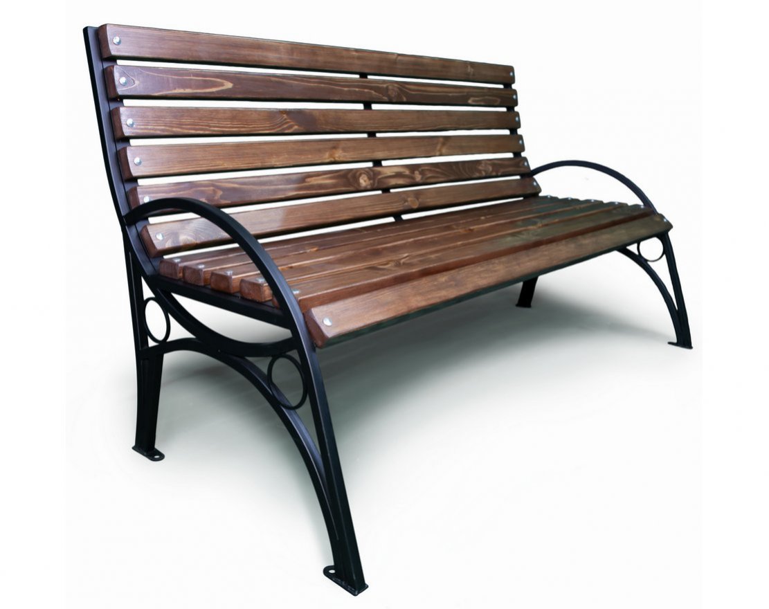 Скамейку «Тверь» отличает нетривиальный дизайн, функциональность. Сиденье и спинка выполнены из качественного бруса. Металлический каркас радует глаз интересным узором. Плавный изгиб обеспечивает комфортный отдых. На подлокотники удобно опереться.