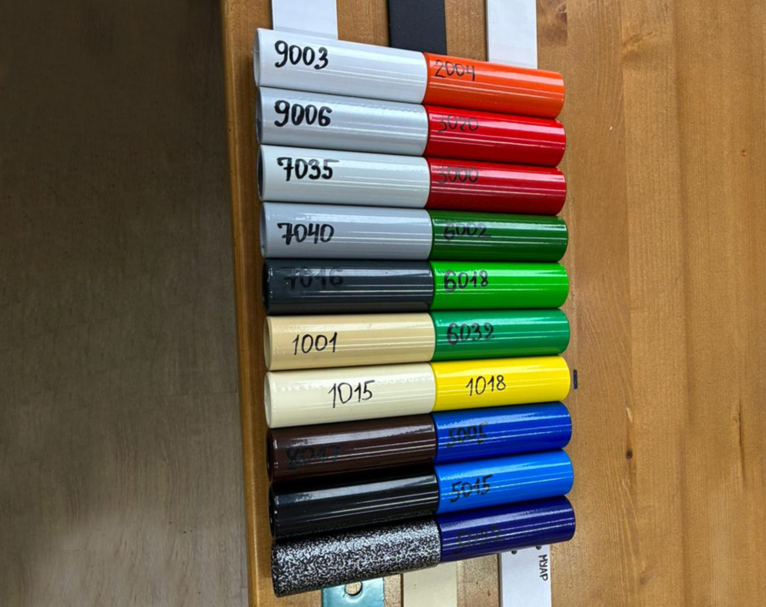 - Металлический каркас окрашивается полимерно-порошковой краской. Цвета можно выбрать по таблице RAL.