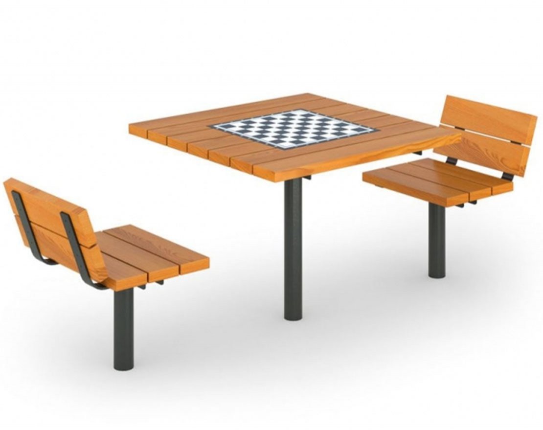 - Сиденье, спинка и столешница: Брус из хвойных пород древесины – сосна (сорт AB). Брус обработан антигрибковой пропиткой Xilidrol Incolore (прозрачный) методом окунания с последующей сушкой и нанесением путем распыления тонировочной пропитки Xilidrol и покрытием лака на водной основе (прозрачный) IDROPAC 975/25 в 2 (два) слоя. Цвет покраски - Бисквит. Сечение бруса: 140х30 мм. Шахматное поле: Виниловая наклейка.