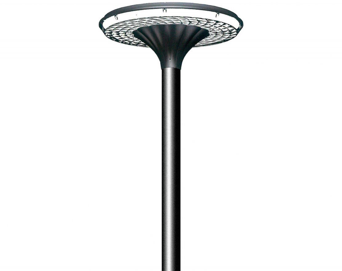 Производится путем бетонирования закладной детали с последующим креплением к ней стойки фонаря болтовым соединением.